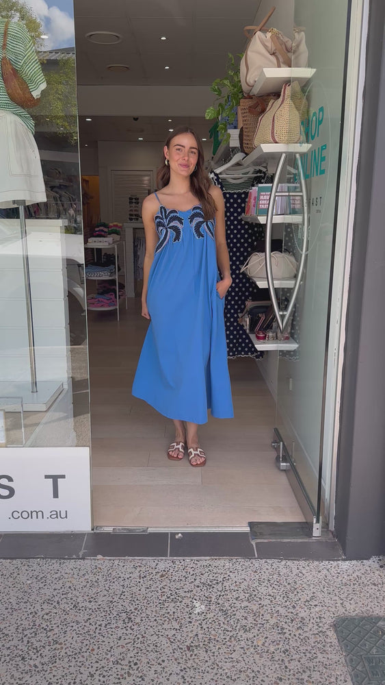 Alice is the perfect summer dress. The embroidery palm design is an elegant stand out feature, which makes this dress a great option for your summer soiree.