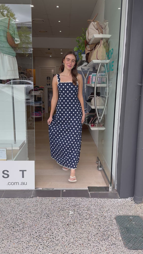 SOREN MAXI DRESS - NAVY & WHITE SPOT