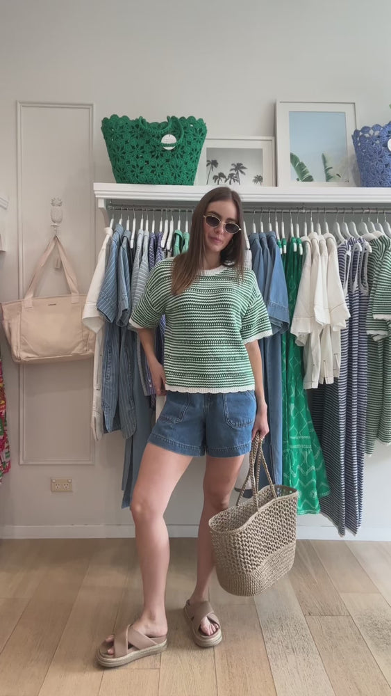 CERES LIFE NINA BOXY KNIT TEE - KELLY GREEN STRIPE