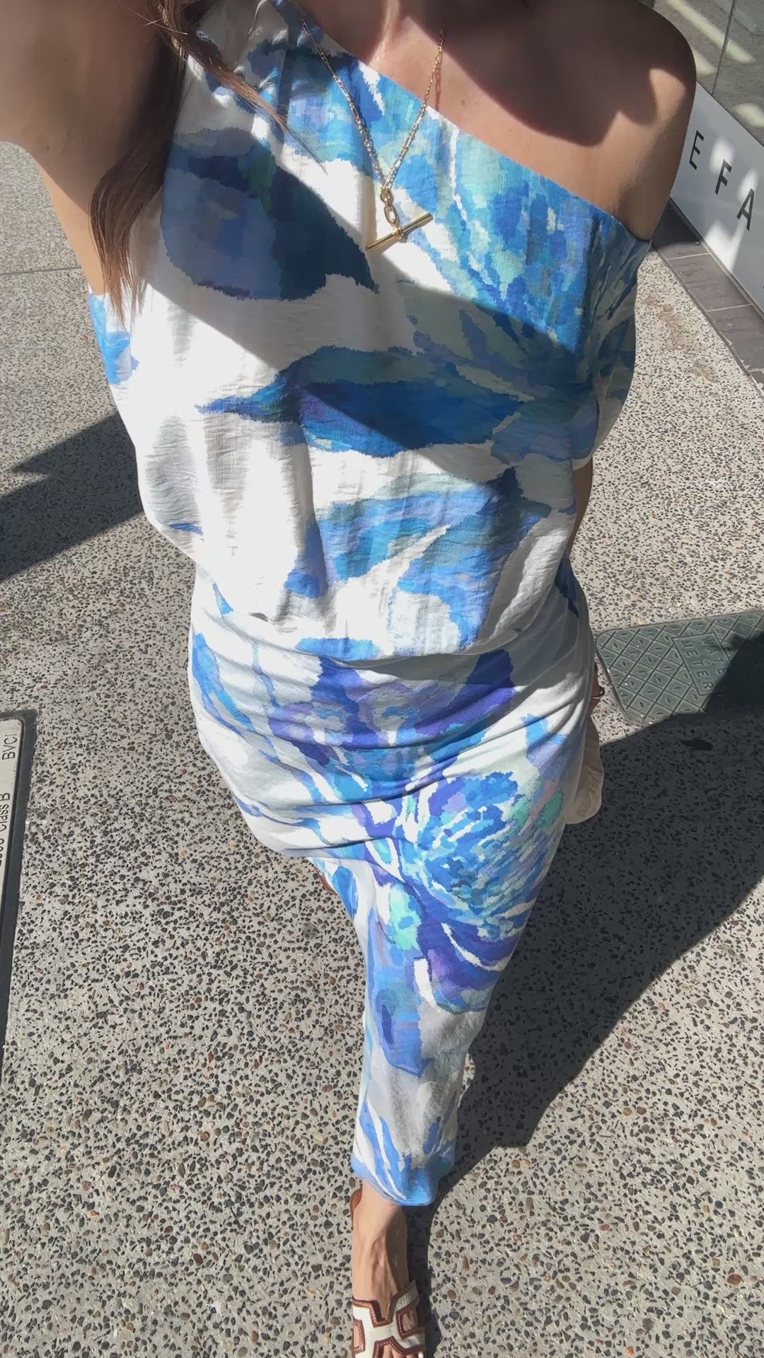 Your NYE dress is sorted. Cassia is a flattering off the shoulder style in a gorgeous blue print...perfect for all your summer lunches.