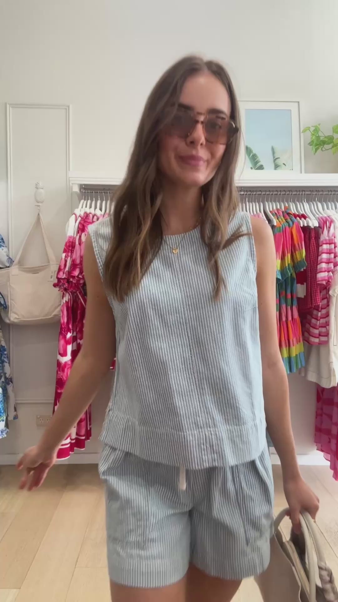 One of our best selling short styles in a NEW Stripe print! The Relaxed everyday short is defined by a slouchy fit with wide leg, mid thigh length, elasticated waistband with drawcord, pleats at front pocket, a soft drape, deep hem and finished with heavy weight top stitching.