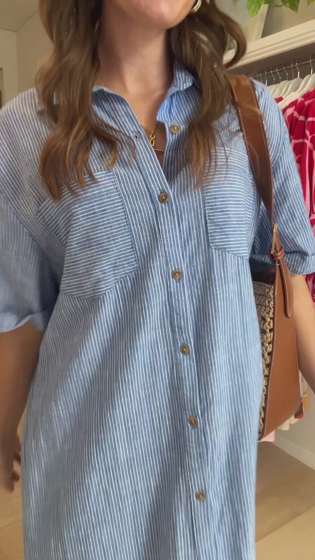 The Hanna Midi Shirt Dress is crafted from a textured organic cotton. Its relaxed fit and full button-through design make it effortless for busy days. Whether you’re heading to a casual brunch with friends, navigating a busy workday, or enjoying a quiet afternoon in the park, this dress has you covered.