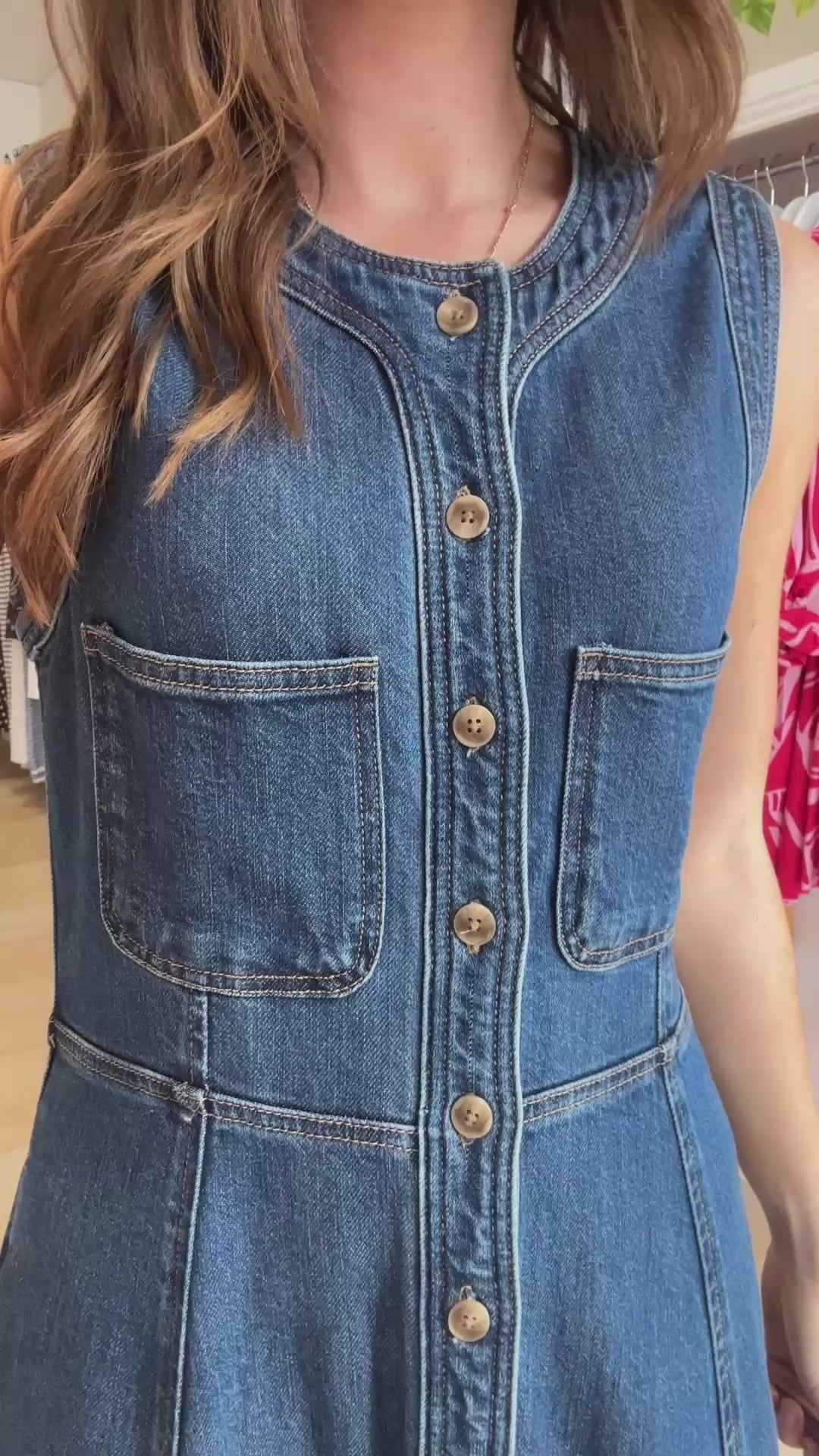 The Hazel Sleeveless Midi Shirt Dress is crafted using a soft mid-weight denim. Featuring a button-through front and flattering, body-skimming fit with a flared skirt, and patch and side pockets for all of your essentials. This all in one will become a wardrobe staple and perfect for those days you just can’t decide what to wear!