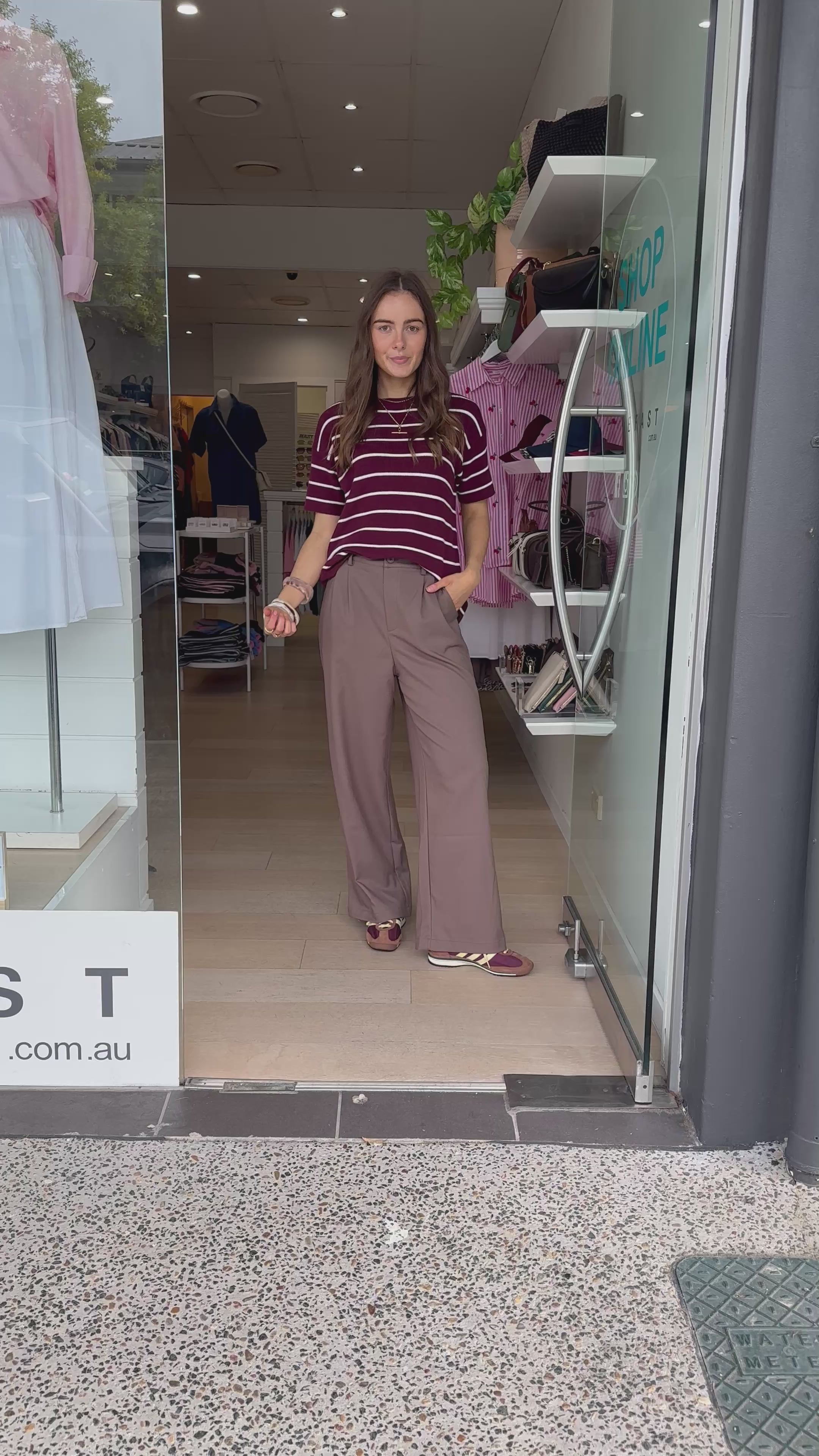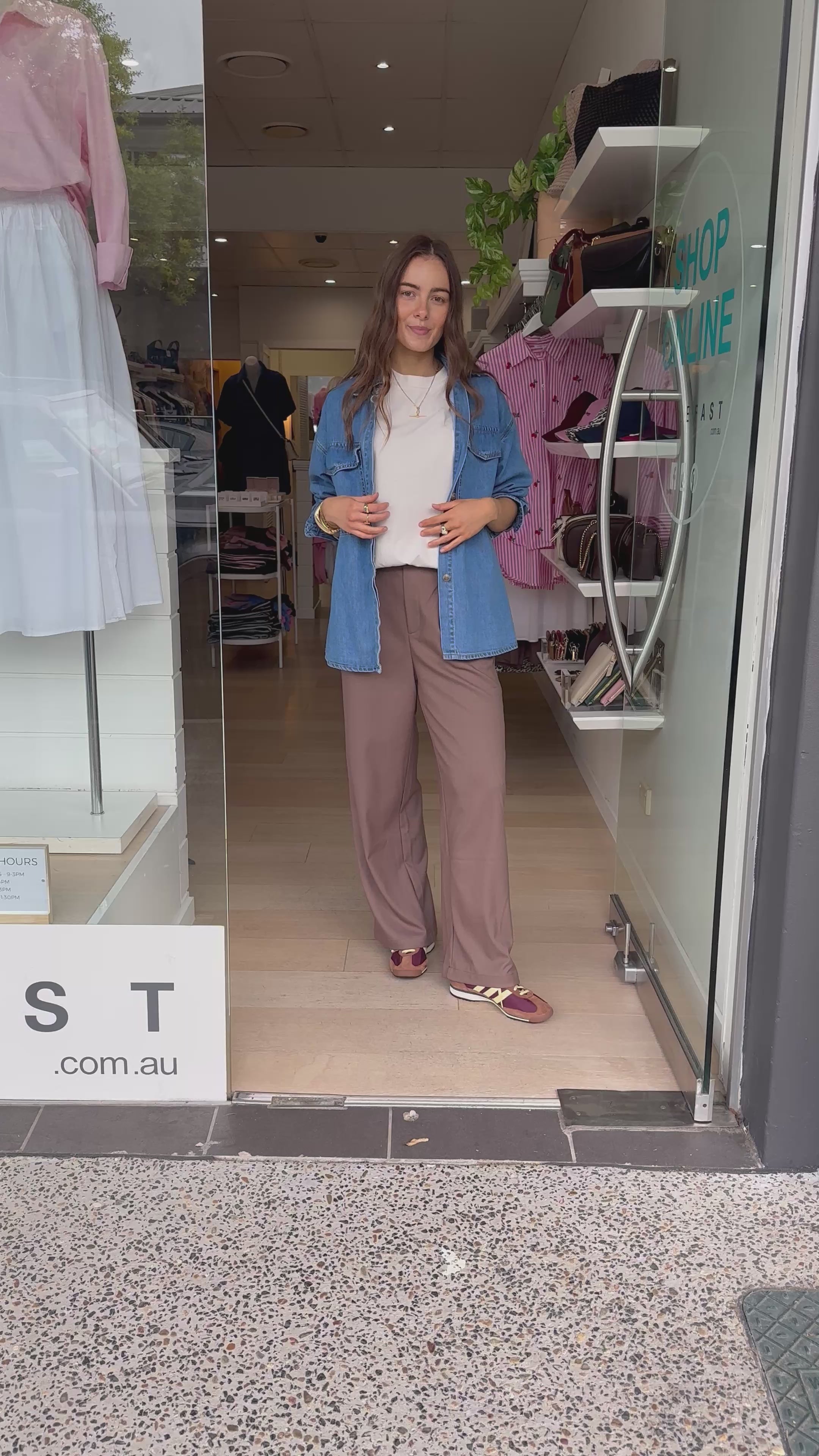 Relaxed and stylish, the Carmen Pant in Chocolate is the new go-to staple pant! With their perfect blend of style and comfort this incredible pant will take you through the seasons with ease! Features include a wide leg, high waist, belt loops, side pockets, button and zip closure, elasticated waist at the back, faux back pocket, all finished in a breathtaking chocolate fabrication.